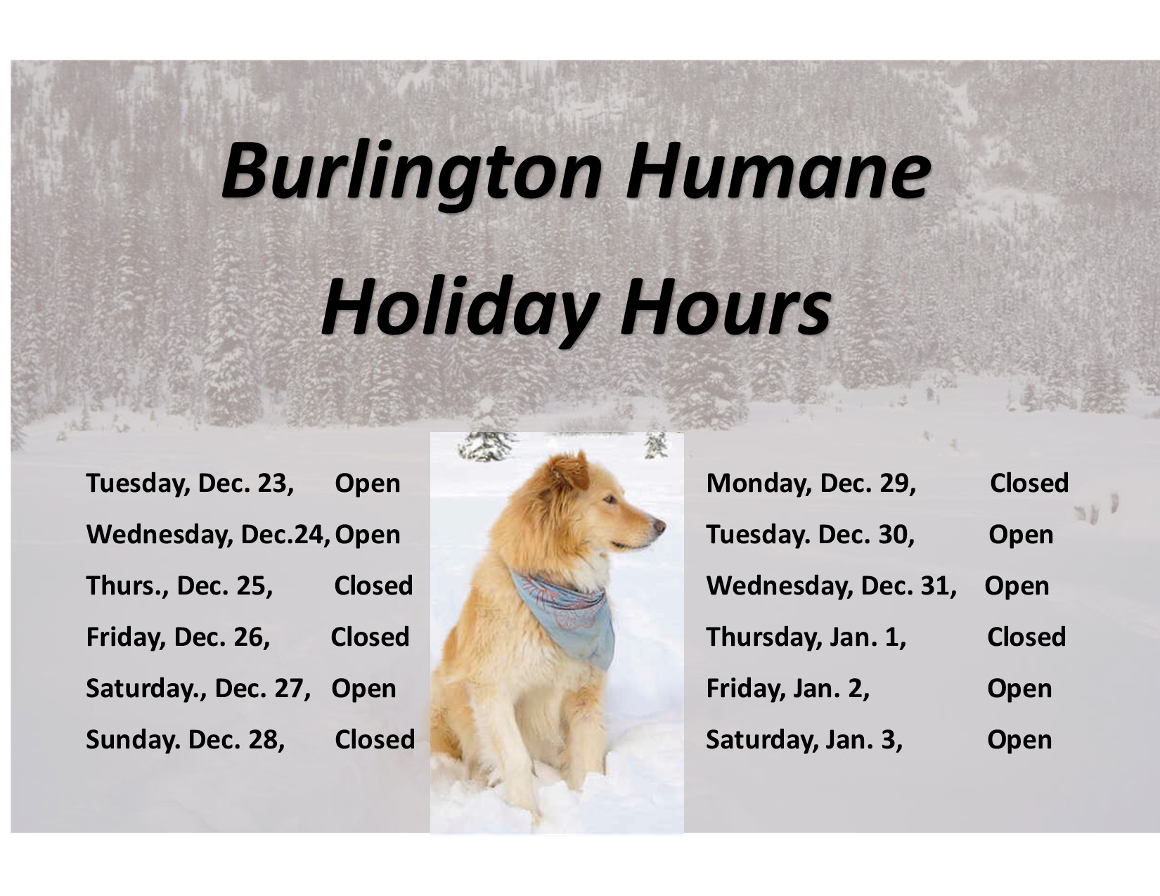 at Burlington Humane Society (740 Griffith Court, Burlington).