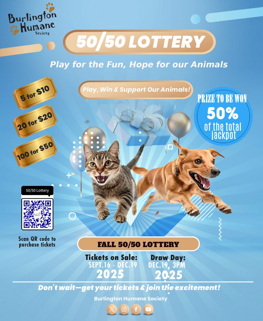 The more you play, the more you support the animals of Burlington Humane! Don’t miss your chance to win big and make a difference. 🎄🐾